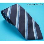 新品展示品 azabu tailor 麻布テーラー 日本製 伊製生地 シルク100% ストライプ ネクタイ 青 0929-14