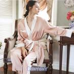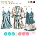 ルームウェア 4点セット ガウン付 サテンパジャマ オールシーズン シルクタッチ サテン キャミソール ショットパンツ 薄手 パッド付き 部屋着 快適