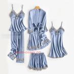 シルクパジャマ レディース 上下 3点セット セットアップ インナー キャミソール ルームウェア 部屋着 長袖 前開き 大人 可愛い 春 夏 秋 冬