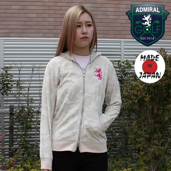 【★30%OFFクーポン★店内全品対応・12月1日23:59迄】アドミラルゴルフ (AdmiralGOLF) パーカー レディース アドミラルゴルフ カモフラージュ パイル生地 ベージュ S M L
