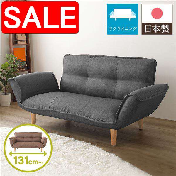 【スーパーSALE 10%OFF!】 日本製 リクライニング ソファー カウチ ソファー 【2人掛け デニム調生地 グレー】 脚部:ナチュラル 肘付き 脚付き 国産 ポケットコイル ローソファ 北海道・沖縄 離島への配送不可