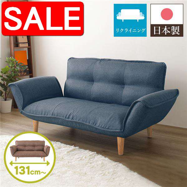 【スーパーSALE 10%OFF!】 日本製 リクライニング ソファー カウチ ソファー 【2人掛け デニム調生地 ブルー】 脚部:ナチュラル 肘付き 脚付き 国産 ポケットコイル ローソファ 北海道・沖縄 離島への配送不可