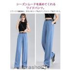 【特価】デニムパンツ ガウチョ レディース レーヨン生地 接着冷感 薄手 ロング ハイウエスト 九分丈 ゴム 夏 秋 大きいサイズ オシャレ