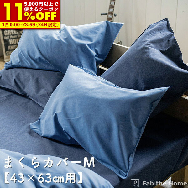 【クーポンで11%OFF★12/1 0:00〜23:59】 枕カバー Mサイズ まくらカバー 43×63cm用 ライトデニム オシャレ 寝具 ピローケース 綿100% コットン ヴィンテージ調 デニム生地 fab the home ファブザホーム