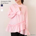 ブラウス 長袖 レディース トップス バックリボン パフスリーブ ドット スモック ペプラム フレア プルオーバー 薄手 無地 白 黒 春 秋