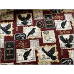 marble 1m単位 ブロード 生地 布 Crow カラス 鳥 パネル柄 ラメ bordeaux 1B
