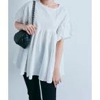 異素材切替 ペプラムトップス レディース 長袖 プルオーバー フリル 切り替え ダンボール生地 体型カバー クルーネック 大人 きれいめ カジュアル 無地 春 秋