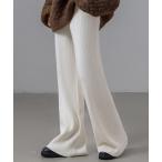 パンツ 「ストレッチ生地/全周ゴム/脚すらっと見せ」ウエストリボンリブニットイージーフレアパンツ レディース