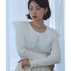 ニット セーター シアーフリルカラー ニット トップス リブニット 長袖 ビッグカラー レディース