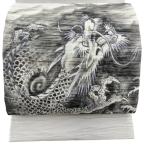 美品 袋帯 逸品 証紙あり 龍 如意宝珠 金銀糸 青灰色 お太鼓柄 正絹 中古