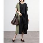 ワンピース A.N.L アシンメトリー配色ドレープワンピース 半袖