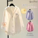 シャツ ブラウス レディース 春 秋トップス 白シャツ 長袖 綿100% 無地 ゆったり 着痩せ 春シャツ ナチュラル 大人 通勤 旅 30代 40代コットン100%