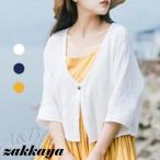 ボレロ 夏 カーディガン 前開き 綿 無地 シンプル Vネック 薄手 UVカット 7分袖 フリーサイズ 可愛い トップス レディース お出かけ 定番 ゆったり