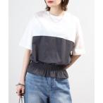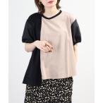 tシャツ Anna Nicola バイカラー切替カットソー 半端袖 レディース