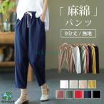 麻綿パンツ レディース ウエストゴム テーパードパンツ 麻綿風パンツ ゆったり ボトムス 9分丈 無地 柄 美脚 リネンパンツ おしゃれ