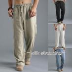 リネンパンツ メンズ カジュアルパンツ 綿麻 ロングパンツ ワイドパンツ 涼しい 麻混 ボトムス 無地 大きサイズ ゆったりシルエット