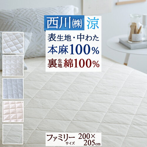 12/1限定★11%OFFクーポン 敷きパッド 冷感 ファミリーサイズ 200cm幅 麻100 涼感 麻100% ひんやり 西川 詰め物麻 天然素材 洗える 接触冷感 ひんやり クール 春 秋 夏用 リバーシブル 裏生地 綿100 綿100% 吸湿 敷パット 敷パッド ベッドパッド
