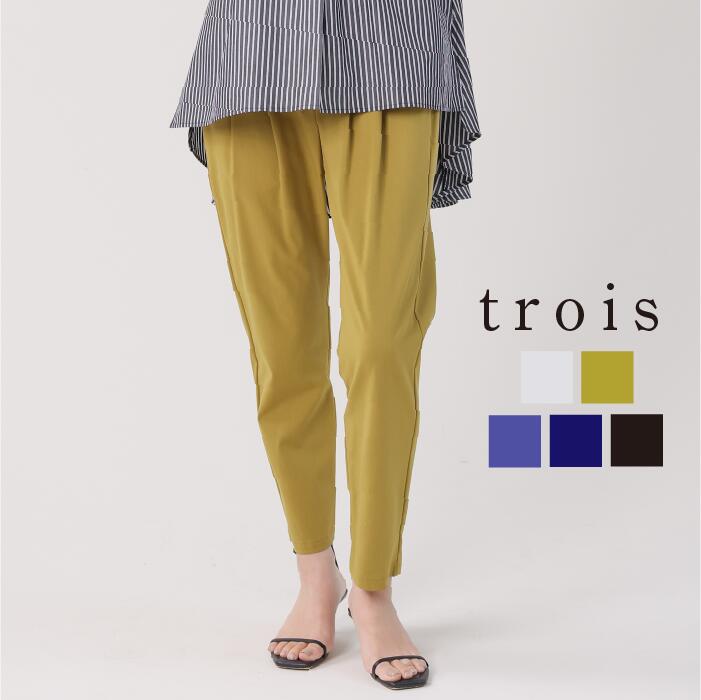 【50%OFFクーポン配布中!】trois トロワ 2025ss アサレチック テーパードタックパンツ T251-87060 麻ライク ストレッチ生地 テーパード タック レディース 大人カジュアル 上品 高見え きれいめ 日本製 即日発送 送料無料