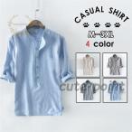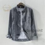 リネンシャツ メンズ 秋 春 長袖 無地 麻混シャツ カジュアルシャツ 通勤 開襟 リネンシャツ メンズ 綿麻シャツ 麻 カジュアルシャツ
