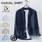 リネンシャツ メンズ 長袖 無地 麻混シャツ カジュアルシャツ 夏シャツ 通勤 開襟 ワイシャツ トップス ワークシャツ おしゃれ リネン 麻 夏物 父の日