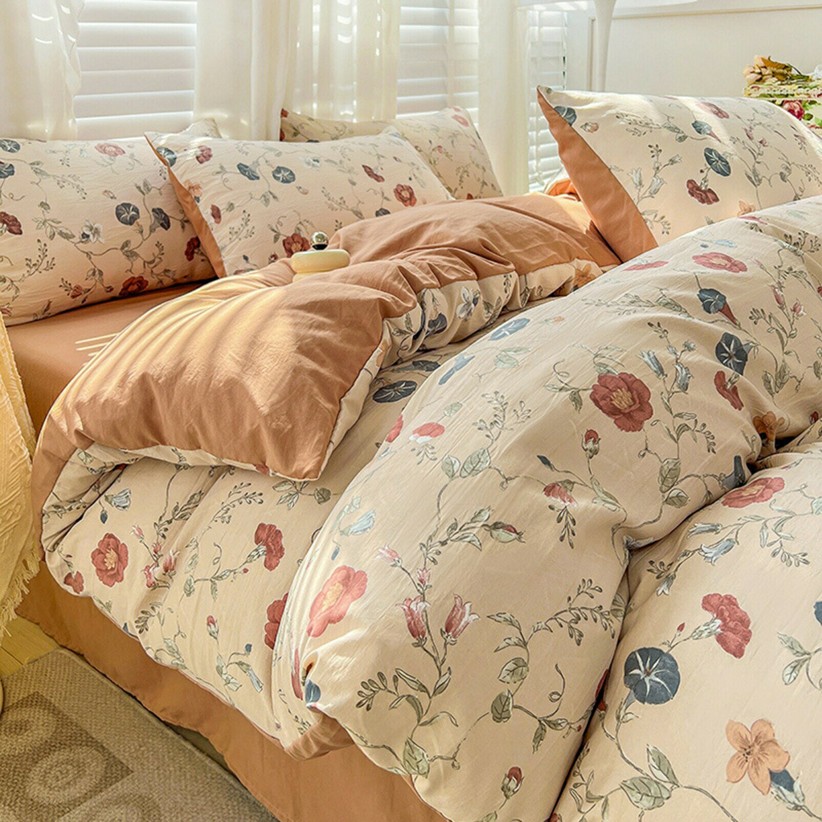 【20%OFFクーポン〜】布団カバー 掛けふとんカバー 4点セット 四季通用 抗菌防臭 綿麻混紡 優しい肌触り 柔らかい 防ダニ加工 摩擦耐久性 生地の縮み 型崩れ防止 高密度生地 長く使える ふとんが入れやすい 着脱簡単 洗