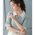 ニット セーター 2026春夏新作 レースシャツレイヤード風スキッパーニット レディース