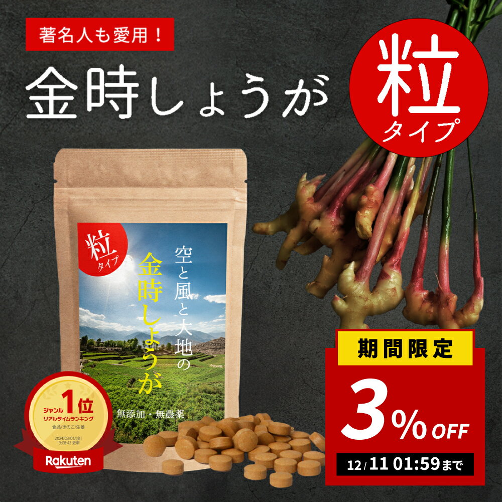 【3%OFF!!2倍P!楽天スーパーセール限定】蒸し金時しょうが 粒タイプ 120粒 【送料無料】無添加・無農薬栽培された純粋な金時ショウガを使用! しょうが ジンジャー 100% 生姜 粒 サプリ 錠剤 国産 人気 生姜サプリ 金時生姜 金時しょうが 蒸し ダイエット