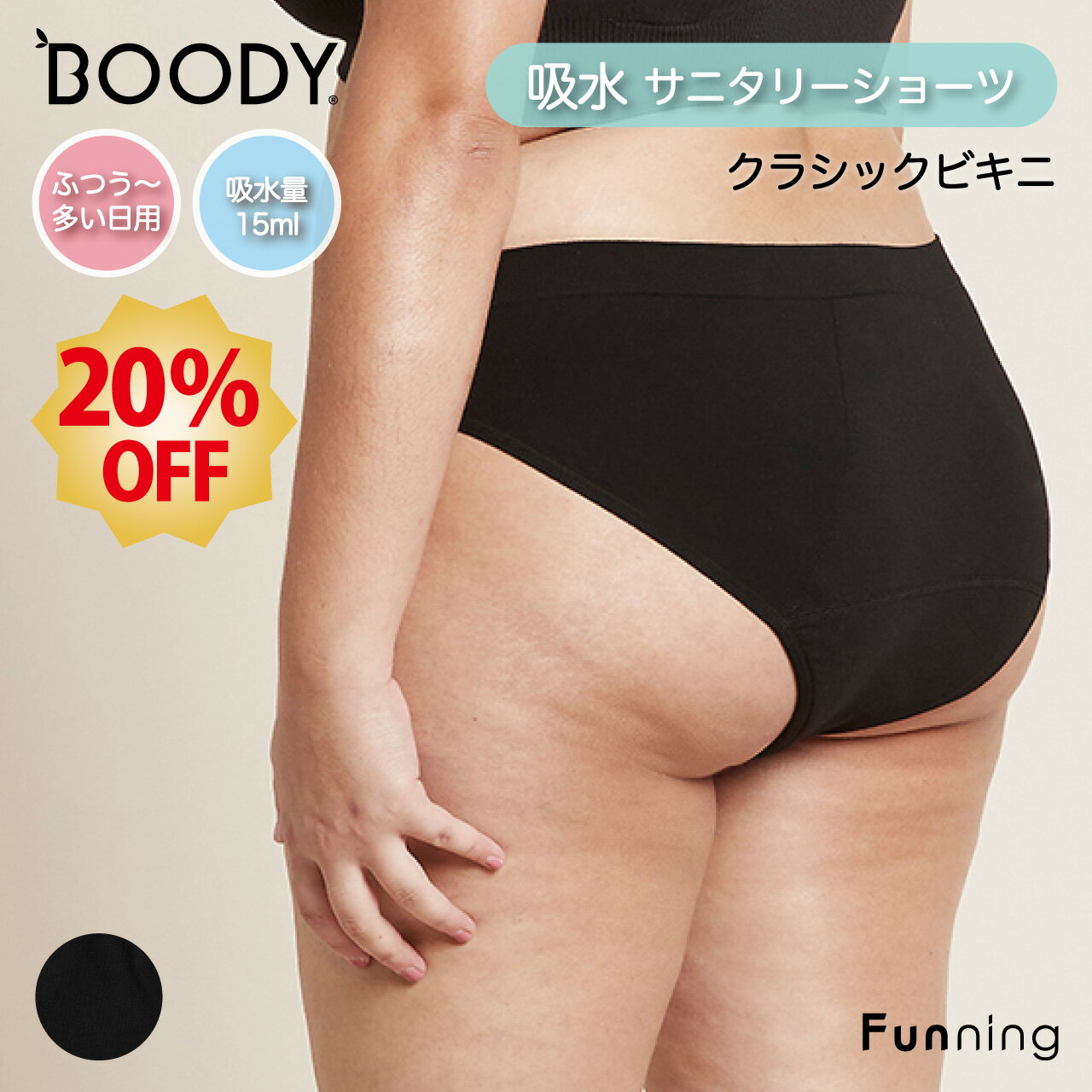 【20%OFF!1/1 0:00-1/14 23:59】BOODY (ブーディ) 吸水サニタリーショーツ クラシックビキニ 普通〜多い日用 レディース 女性 バンブー 竹 竹繊維 蒸れない 抗菌 吸湿性 静電気防止 低刺激 オーガニック素材 インナー 吸水ショーツ アンダーウェア シームレス 正規品