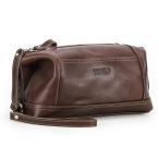 Contacts 男性用ロック付きトイレタリーバッグ 本革 旅行コスメバッグ シェービングドップキット オーガナイザー クラッチハンドルとダブルコンビ