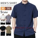 チャイナ服 男性用 メンズ チャイナシャツ カンフーシャツ 半袖 無地 カジュアルシャツ おしゃれ トップス バンドカラー 父の日