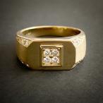 メンズリング 印台 18金 指輪ゴールド メンズ 金 ダイヤ K18 ダイヤモンド 鏡面 艶消し 男性用 メンズジュエリー