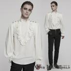 ゴスロリワールド WY-1766CCM-WH ゴシック ファション スタンドフリルカラー ホワイト シャツ ブラウス カットソー 紳士 ジェントルマン 貴族 男爵