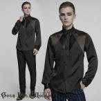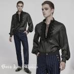 ゴスロリワールド SHT147 スチームパンク ファッション 光沢 フリル襟 レース 長袖ブラウス 黒色 紳士 ジェントルマン 貴族 男爵 スチームパンク ビジュアル系