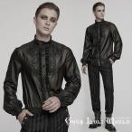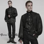 ゴスロリワールド SHT14601 スチームパンク ファッション ジャガード 長袖シャツ ブラウス 黒色 ブラック 紳士 ジェントルマン 貴族 男爵 スチームパンク