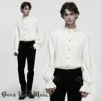 ゴスロリワールド WY-1883CCM-WH ゴシック ファッション スタンドフリルカラー 長袖シャツ ブラウス 白色 ホワイト 紳士 ジェントルマン 貴族 男爵 舞台衣装