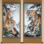 肉筆絹本 掛軸 二幅一組 「 猛虎対峙図 」 縦180cm 寅年 正月 本画 双福 お祝い プレゼント ギフト 通販 販売 HQS05