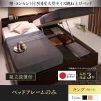 (タイムセール中) 組立設置付 連結ベッド キング(SS+S) ベッドフレームのみ縦開き 棚・コンセント付日本製跳ね上げベッド キングサイズベッド