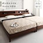 (タイムセール中) ツインベッド マットレス付き ボンネルコイル 高級ウォルナット材 ツイン(SD×2)