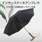 インナーステッキアンブレラ 2-in-1ステッキ傘 松葉杖傘 男女兼用 紳士傘 防風傘 晴雨兼用 軽量 8本骨 梅雨対策 撥水 防風