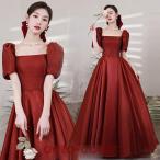 結婚式ドレス ワイン赤 二次会ドレス ロングドレス パフスリーブ イブニングドレス 白 ホワイトドレス パーティードレス ゲストドレス お呼ばれドレス 発表会
