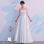ウエディングドレス カラードレス 花嫁 ドレス ロング パーティードレス 結婚式 お呼ばれドレス 袖あり ロングドレス ウエストマーク 大きいサイズ 3L 4L 5L