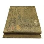 平和屋着物●西陣 鷹匠謹製 両面 太鼓柄袋帯 利休白茶 鳥獣戯画 金糸 正絹 逸品 CABC4691dy