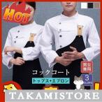 コックコート セット コック服 コックウェア コックシャツ トップス 調理用 ユニフォーム エプロン付き 長袖 飲食店 おしゃれ パン屋 ケーキ屋 カフェ