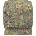 美品 袋帯 名品 落款あり 白鳳茶の葉染 辻が花 金糸 よもぎ色 お太鼓柄 正絹 中古