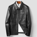 【送料無料】レザージャケット メンズ 本革 厚手 牛革 レザーコート 折り襟 革ジャン 大きいサイズ ジャケット 秋 ショート丈 ライダースジャケット バイク プレ