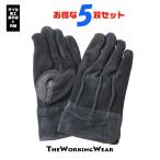 革手袋 作業服 作業着 449-755 黒オイル牛床 内綿革手袋 背縫い お得な5双セット 作業手袋 防寒 防風 皮手袋