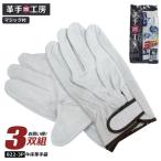 富士グローブ 皮手袋 作業用 M-LLサイズ #3-380 洗える牛床皮手袋 マジック付 3双組 お買い得 メール便対応