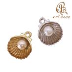 チャーム キーホルダー ペンダント 貝 貝殻 パール 真珠 10個 15mm×12mm アクセサリー パーツ ハンドメイド オリジナル 材料 金具 装飾