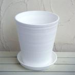 もみっくポット6号ホワイトと受け皿のセット(直径18cm、高さ16.2cm、容量2.2L)