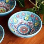 トルコ製ボウル 直径12cm 手書きキュタフヤ陶器 フラワーデザイン エメラルドグリーン